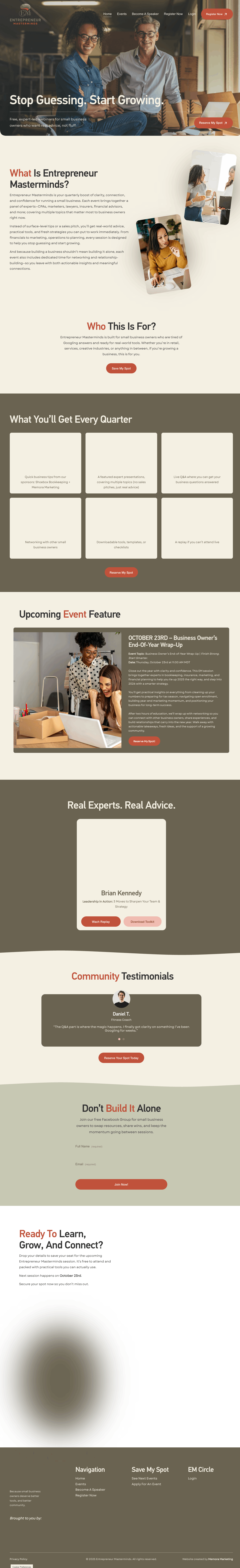 We turned Entrepreneur Masterminds into a cohesive education and networking brand, supported by a conversion-focused website and ongoing marketing that brings entrepreneurs together to learn, connect, and grow.