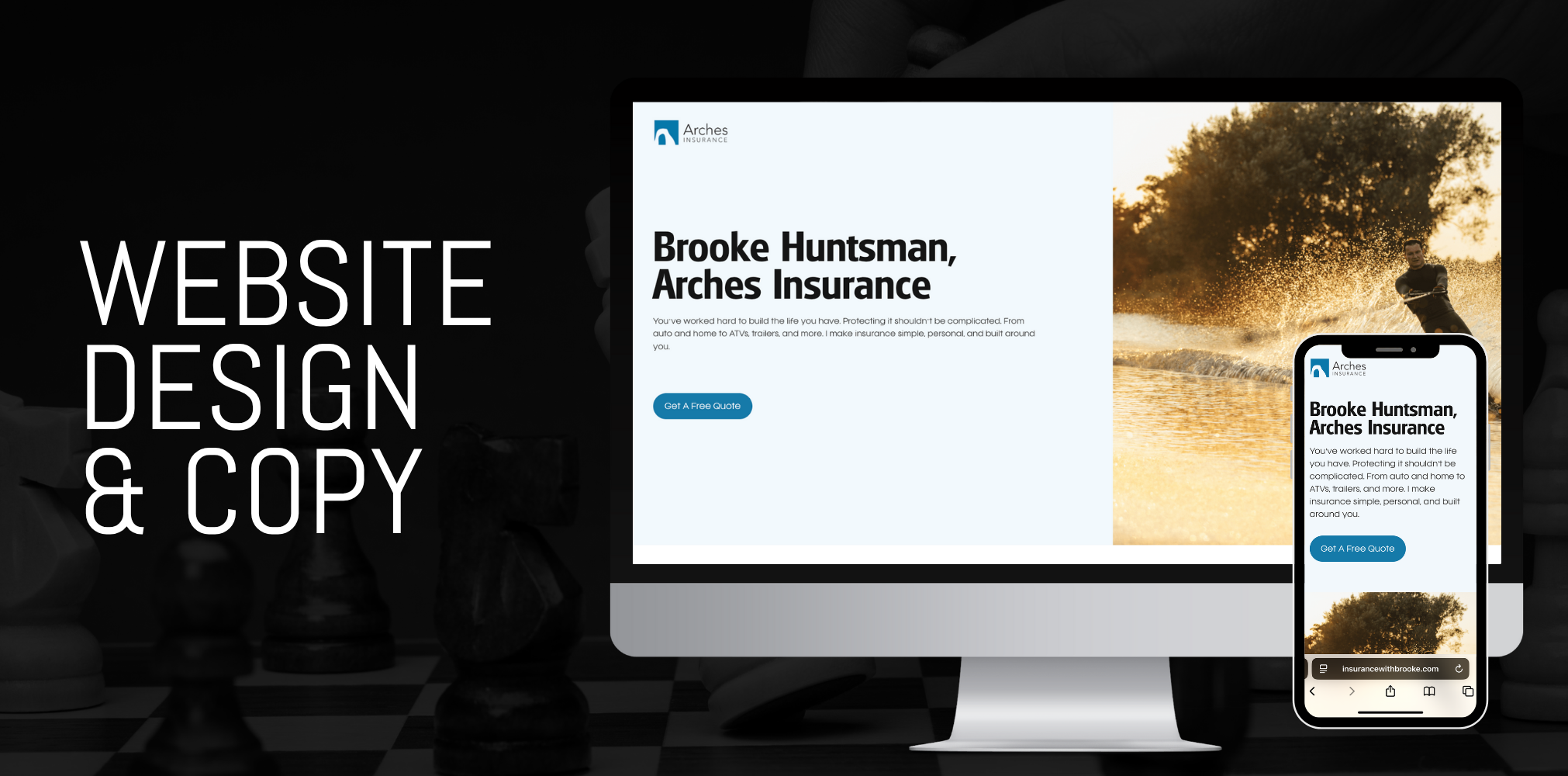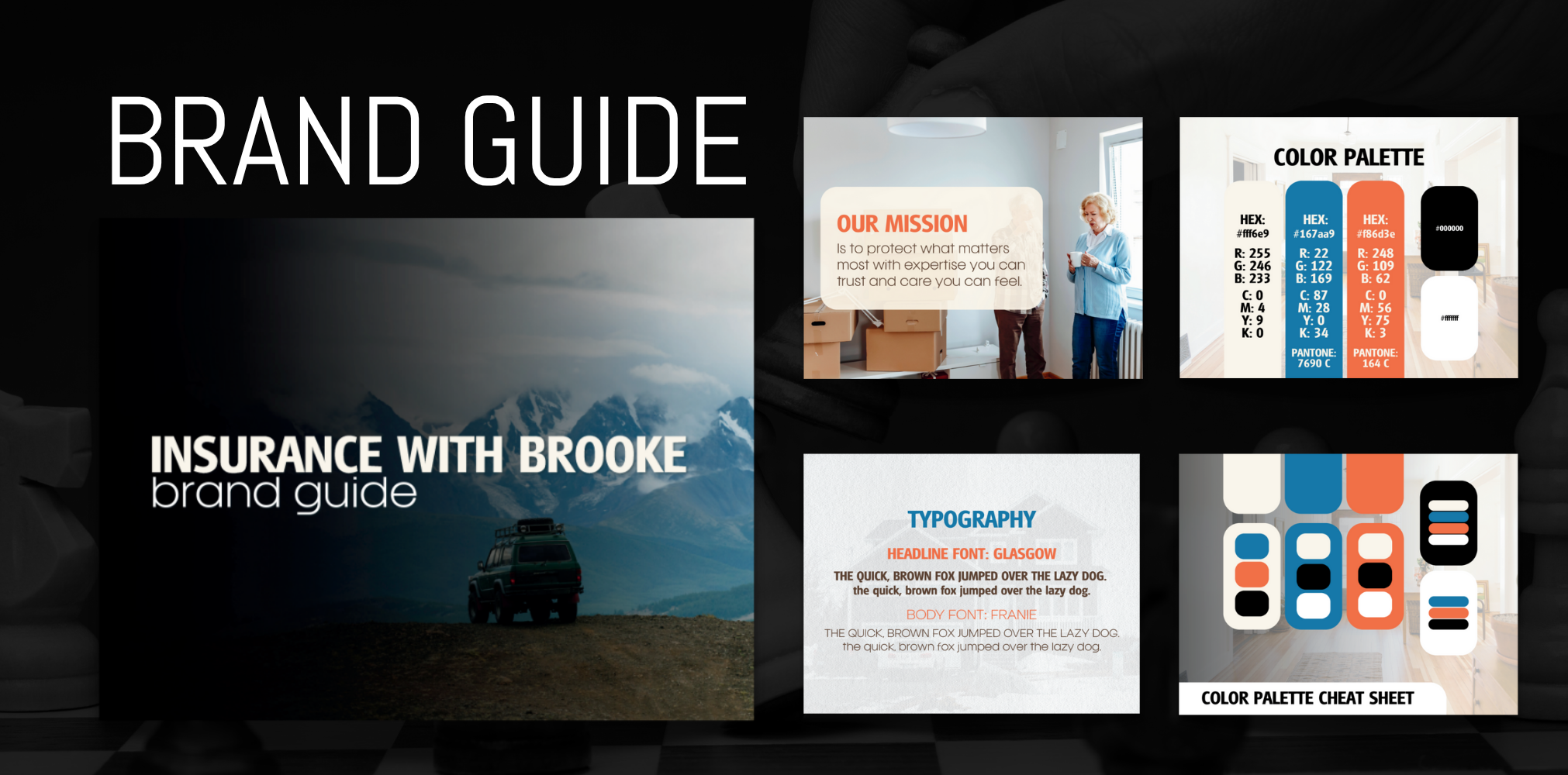 Today, “Insurance with Brooke” feels both personal and professional, a brand that represents freedom, confidence, and care. Brooke’s website aligns visually with her brokerage partner while clearly establishing her as a trusted independent agent. She now has a cohesive brand foundation and online presence that reflect her professionalism and make it easy for clients to find, trust, and connect with her.